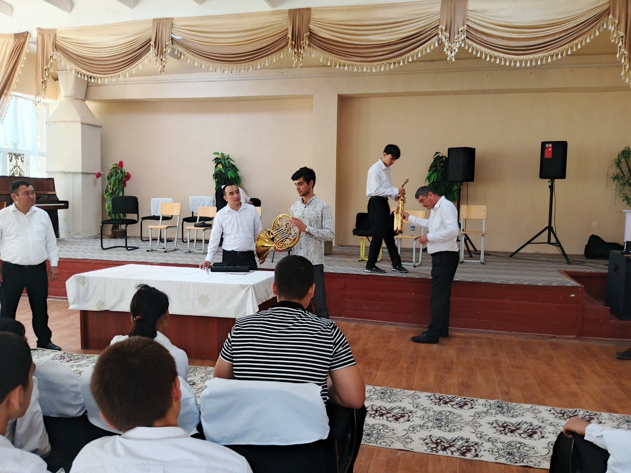 Termiz ixtisoslashtirilgan san'at maktabi damli va zarbli cholg'ular yonalishi o'qituvchilari Angor tumanidagi bir qator umumiy o'rta ta'lim maktablarida bo'lishib, 9-sinf bitiruvchilari bilan targ'ibot suxbatlarini uyushtirishdi va konsert dasturlarini namoyish etishdi.