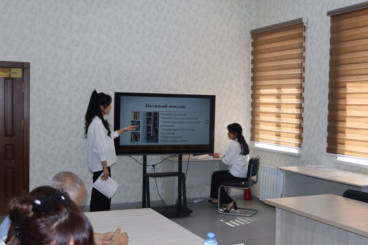 Viloyat matbuot anjumani Surxondaryo viloyat ko’zi ojizlar maxsus kutubxonasining “Retro katalok saqlash” bo’limi mudirasi N.Radjabmaxmudova va yetakchi kutubxonachi Z.Murodova tomonidan ko’rgazmali va amaliy jarayonlar bilan interaktiv tarzda o’tkazildi.