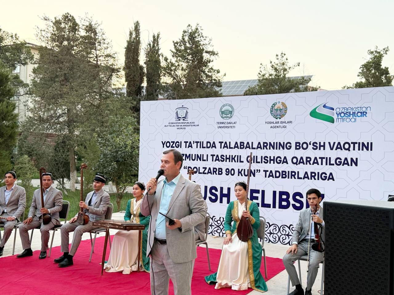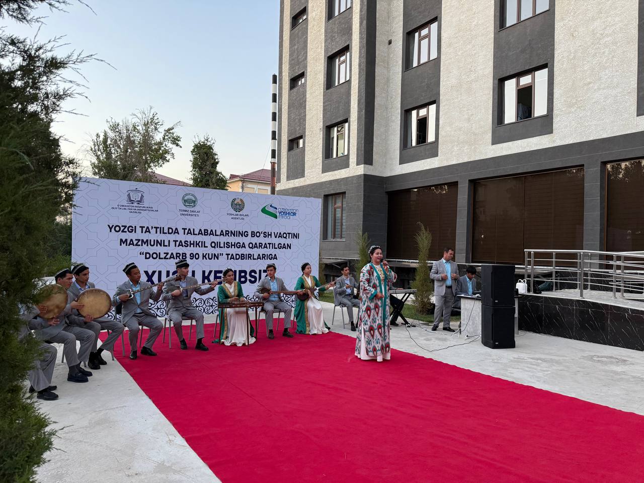 Oʻzbek milliy maqom sanʼati markazi Surxondaryo viloyati hududiy boʻlimi Termiz davlat universiteti 7- talabalar turar joyida "Dolzarb 90 kun" tadbiri doirasida "Maqom kechasi" konsert dasturini namoyish etdi.