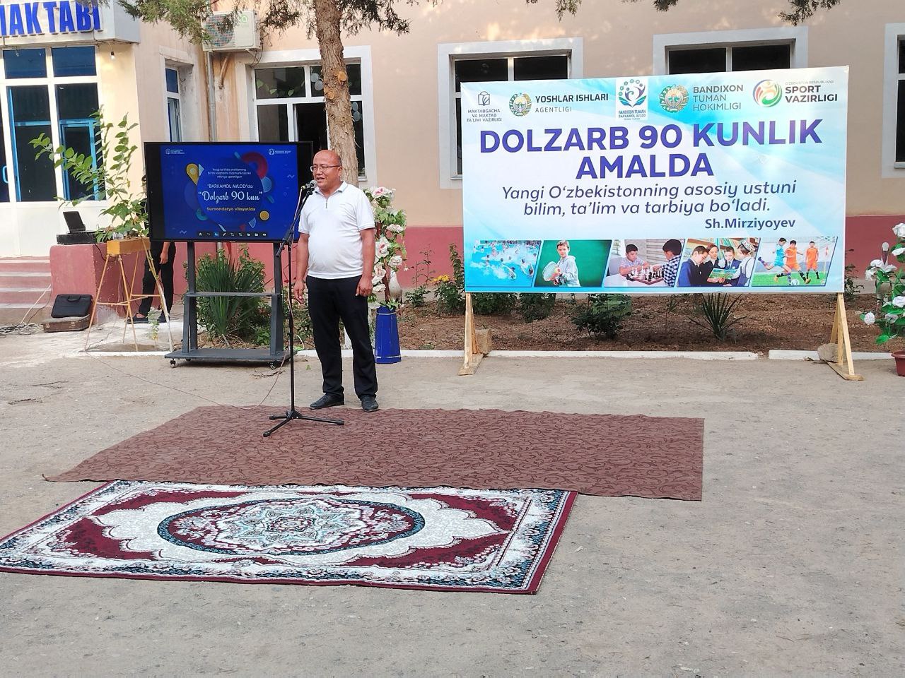Joriy yilning 9-iyun kuni Bandixon tuman madaniyat markazi hamda barkamol avlod bolalar maktabi bilan hamkorlikda "Dolzarb 90 kunlik" doirasida o'tkaziladigan tadbirlar rejasiga muvofiq madaniy-ma'rifiy tadbir tashkil etildi.