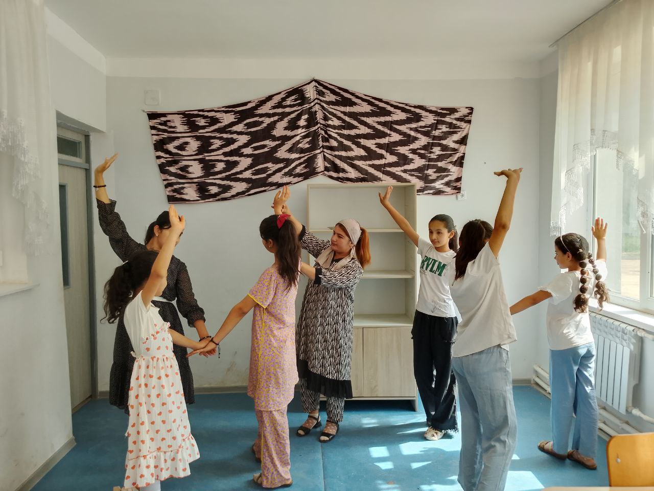 Qumqo'rg'on tumanidagi 71-son "Mustaqillik" madaniyat markazida tashkil etilgan Xoreografiya to'garak mashg'ulot jarayoni.
