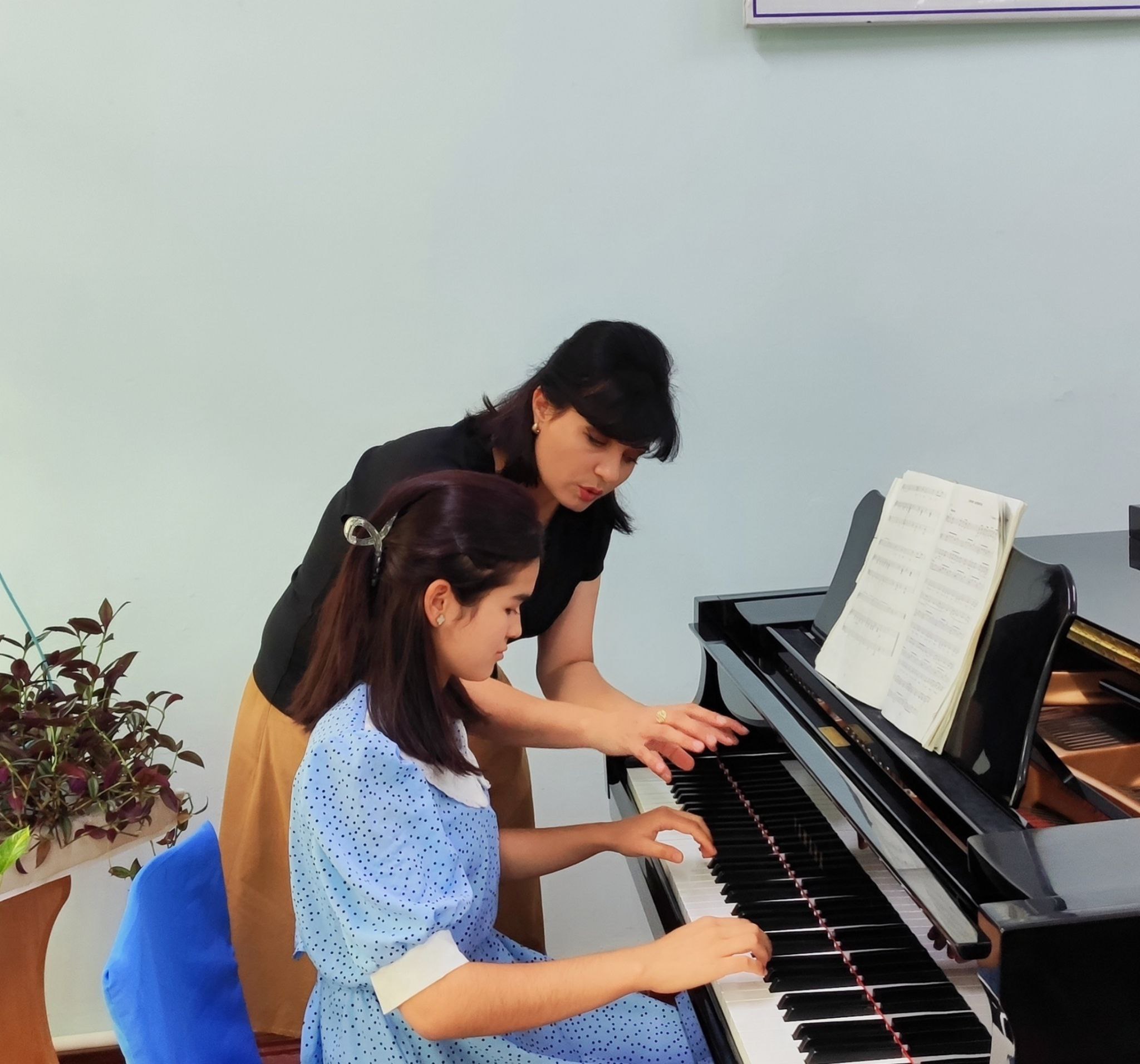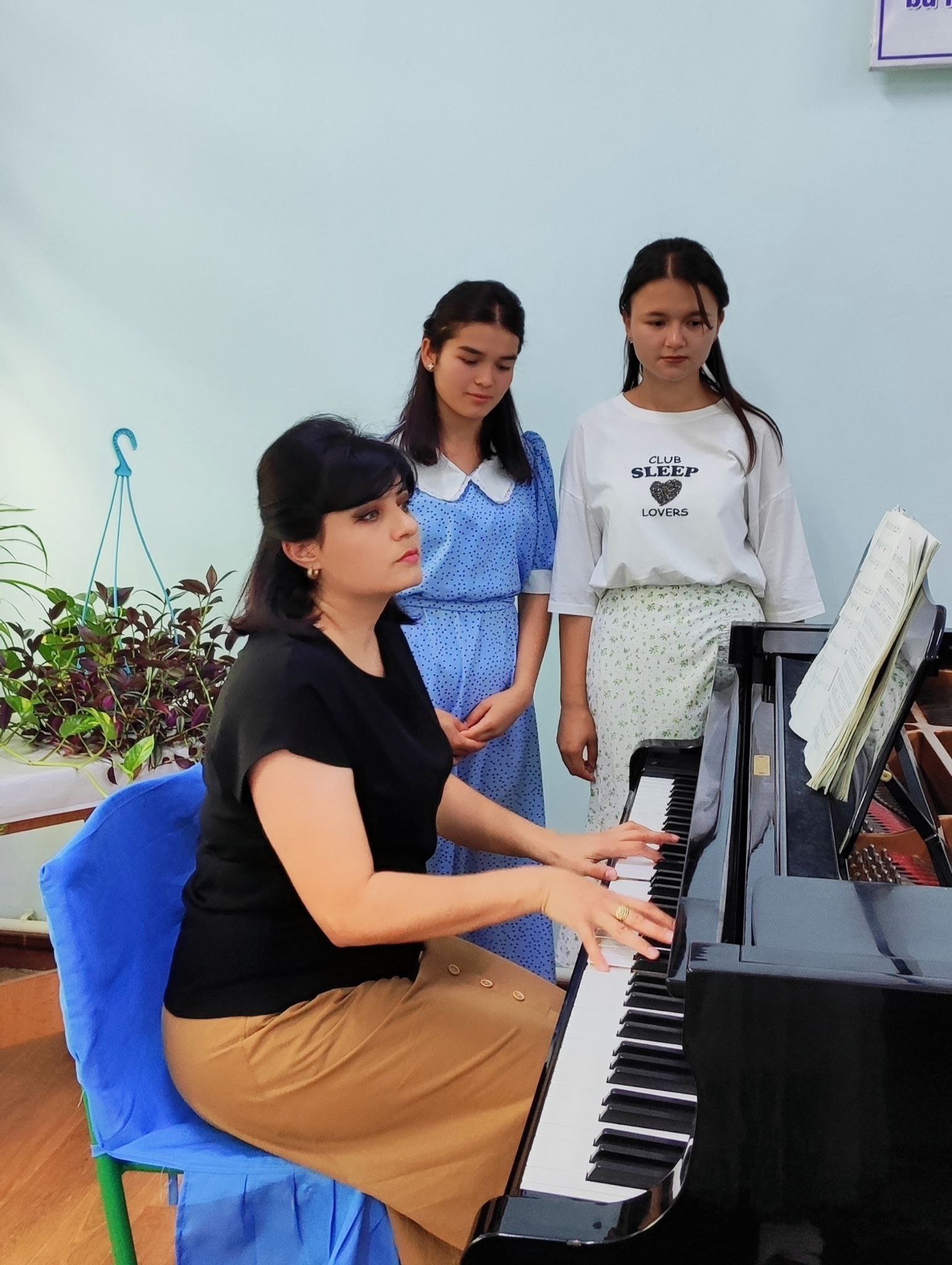Termiz ixtisoslashtirilgan san'at maktabida yozgi ta'til davrida maktab o'quvchilari hamda yoshlarning bo'sh vaqtini mazmunli va samarali tashkil etish maqsadida "Dolzarb 90 kunlik" loyihasi doirasida "Fortepianoda chalishni o'rganamiz" to'garagi mashg'ulotlari jarayonlaridan lavhalar.