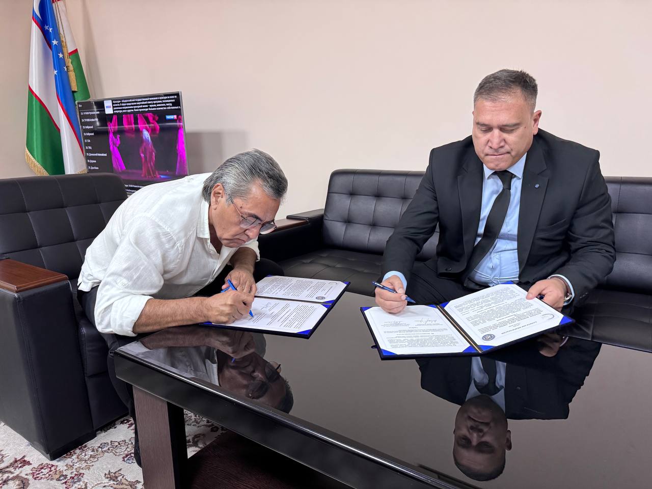 🟢Shu maqsadda O‘zbekiston madaniyat, sport va turizm xodimlari kasaba uyushmasi Respublika Kengashi hamda “Respublika baxshichilik san’ati markazi” davlat muassasasi o‘rtasida hamkorlik memorandumi imzolandi. Ushbu hujjatni O‘zbekiston madaniyat, sport va turizm xodimlari kasaba uyushmasi Respublika Kengashi raisi A. Musaev hamda Respublika baxshichilik san’ati markazi davlat muassasasi direktori U. Norboev imzoladilar.