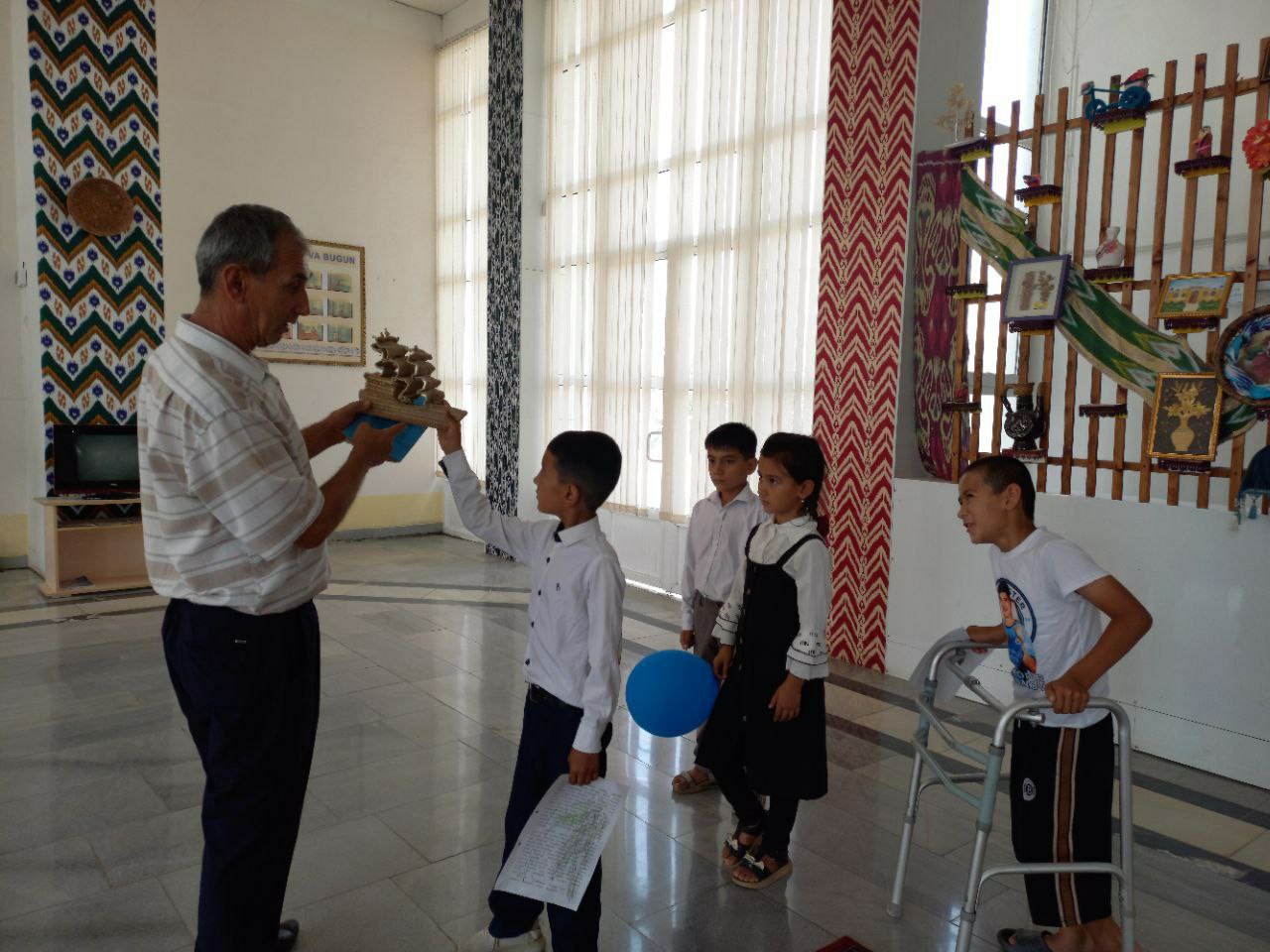 Surxondaryo viloyati Sariosiyo tuman 4-sonli Bolalar musiqa va san'at maktabi Amaliy San'at sinfi óqituvchisi M.Hayitov óquvchilar bilan birgalikda mashg'ulotlar olib bormoqdalar.