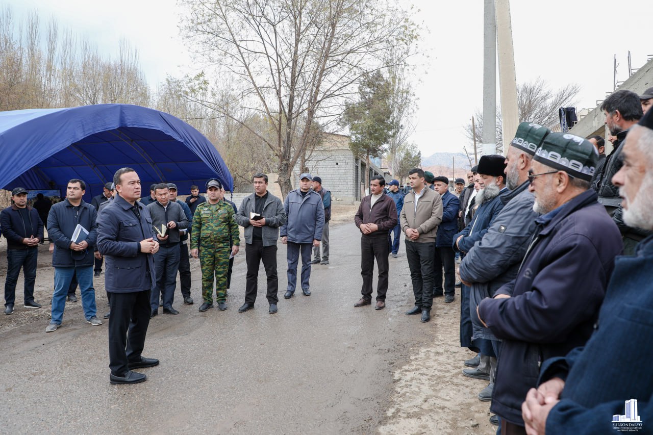 Bugun hokim hududlarga tashrifini Denov tumani Sina qishlog‘ida davom ettirib, belgilangan vazifalar ijrosini o‘rgandi va amalga oshirilayotgan ishlarni ko‘zdan kechirdi. Infratuzilmani yaxshilash, qishloq hududidan oqib o‘tuvchi soy, sel-suv yo‘llari qirg‘oqlarini mustahkamlash hamda tadbirkorlik loyihalari ijrosi yuzasidan mas’ullar axborot berdi.